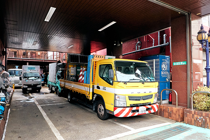 主要道路を規制する際に、規制区間を極力減らす為規制に必要な工事看板を作業車に搭載した、弊社オリジナルの車両です。